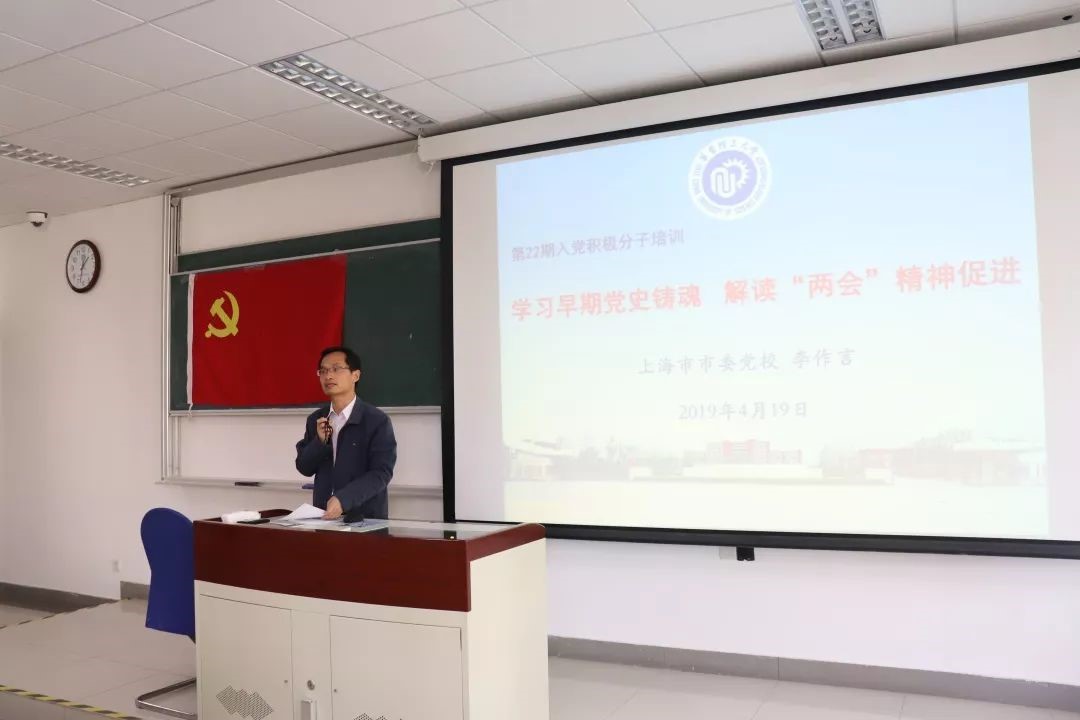 4月19日,上海市委党校李作言博士受邀为材料学院和bat365在线官网登录入口入党积极分子上了一节“学习早期党史铸魂,解读两会精神促进”的精彩党课,bat365在线官网登录入口党委副书记饶志雄主持党课。