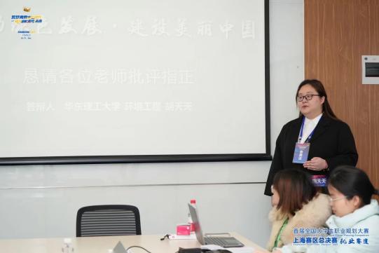 在上海市总决赛中,胡天天以“有我,以青春赴绿水青山梦”为主题,进行了7分钟个人陈述及8分钟评委问答。并在群体面试环节表现突出,最终荣获首届全国大学生职业规划大赛就业赛道上海市银奖。